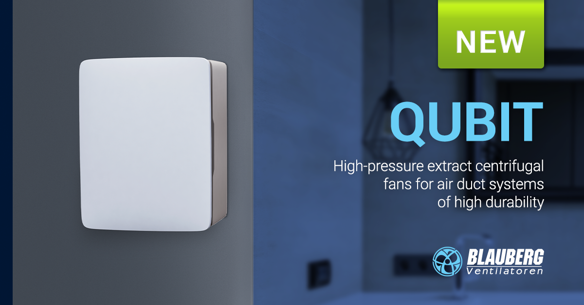 Qubit, a powerful, stylish, and compact centrifugal fan by Blauberg Ventilatoren, can solve this issue. The specially designed Qubit centrifugal impeller creates sufficient pressure to withstand weathering and maintain proper circulation of extract air in long air ducts. Compared to a classic axial impeller, the Qubit centrifugal impeller generates enough pressure to overcome air ducts that are eight times longer.